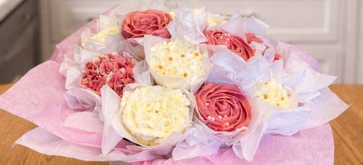 Floral Cupcakes Arranged in a Bouquet
